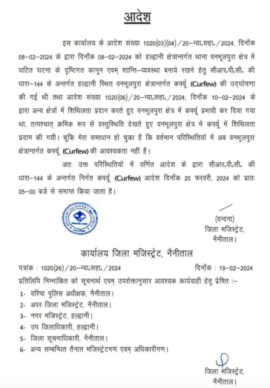 वनभूलपुरा हिंसा मे 10 और उपद्रवी गिरफ्तार, कर्फ्यू हटाया