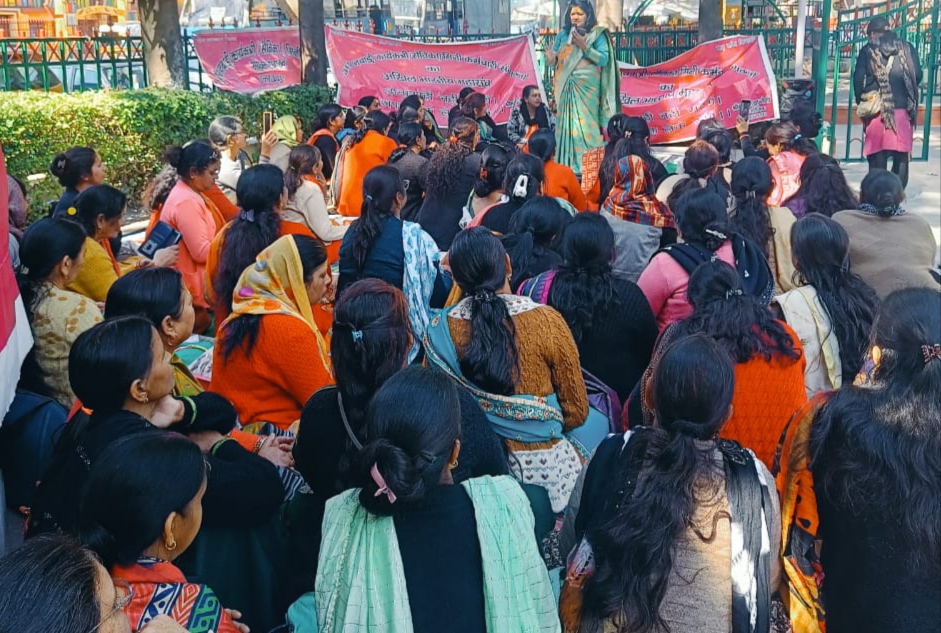 देहरादून। अंतरराष्ट्रीय महिला दिवस एवं शिवरात्रि के पर्व पर आगनबाडी कार्यकर्त्री/ सेविकाओं का मांगों को लेकर धरना दीनदयाल उपाध्याय पार्क मे जारी रहा। धरने के 19वें दिन महिलाओं ने काली पट्टी बांधकर विरोध जताया।