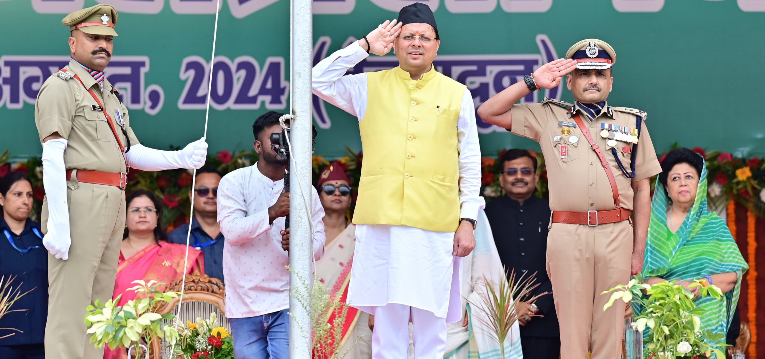 देहरादून। मुख्यमंत्री श्री पुष्कर सिंह धामी ने 78वें स्वतंत्रता दिवस के अवसर पर परेड ग्राउण्ड देहरादून में राज्य के मुख्य कार्यक्रम में ध्वजारोहण किया। इस अवसर पर मुख्यमंत्री ने स्वतंत्रता संग्राम सेनानियों के परिजनों को सम्मानित किया एवं फोटो प्रदर्शनी का भी अवलोकन किया। मुख्यमंत्री ने स्वतंत्रता दिवस की सभी प्रदेशवासियों को बधाई एवं शुभकामनाएं देते हुए राज्यहित में 08 घोषणाएं की।