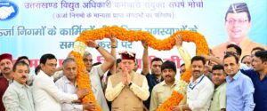 देहरादून। मुख्यमंत्री पुष्कर सिंह धामी ने गुरुवार को मुख्यमंत्री आवास स्थित मुख्य सेवक सदन, देहरादून में ऊर्जा निगमों के कार्मिकों द्वारा आयोजित ’स्वागत एवं अभिनन्दन’ कार्यक्रम में प्रतिभाग किया। उत्तराखण्ड विद्युत अधिकारी कर्मचारी संयुक्त संघर्ष मोर्चा द्वारा ऊर्जा निगमों के कार्मिकों की विभिन्न समस्याओं के समाधान करने पर मुख्यमंत्री का आभार व्यक्त किया गया।
