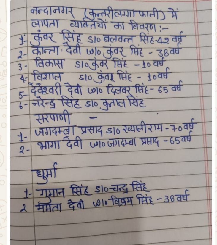 राज्य आपदा परिचालन केंद्र के अनुसार नगर पंचायत नंदानगर के वार्ड कुन्तरि लगाफाली में भारी वर्षा के कारण मलबा आने से 06 भवन क्षतिग्रस्त हुए हैं। घटना में 05 लोगों के लापता होने की सूचना है। 02 लोग घायल हैं और उन्हे बचा लिया गया है। नंदानगर तहसील के धुर्मा गांव में भी भारी वर्षा के कारण 4-5 भवनों की क्षति की सूचना प्राप्त हुई है। प्रारंभिक सूचना के अनुसार जनहानि नहीं है। मोक्ष नदी का जलस्तर बढ़ा है। प्रशासन की तरफ से अभी तक घटना के बारे में पुष्ट जानकारी नहीं दी गई है।
