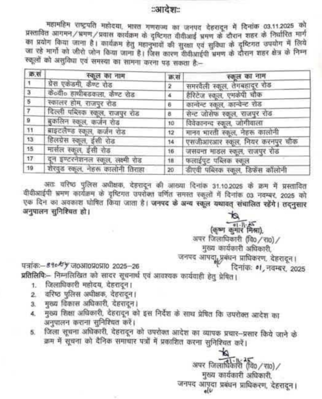 दौरे पर इन स्कूलों पर अवकाश