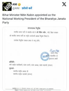 नितिन नवीन बने भाजपा के राष्ट्रीय कार्यकारी अध्यक्ष